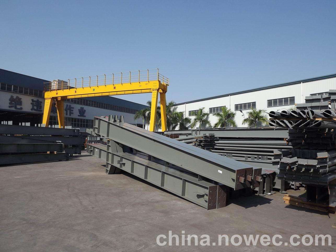 条状单元一般沿长跨方向分割,其宽度约为1~3个网格,其长度为l2或l2/2(l2为短跨跨距)。块状单元一般沿新沂网架平面纵横向分割成矩形或正方形单元。每个单元的重量以现有起重机能胜任为准。条(块)与条(块)之间可以直接拼装,也可空一网格在高空拼装。由于条(块)状单元是在地面拼装,因而高空作业量较高空散装法大为减少,拼装支架也减少很多,又能充分利用现有起重设备,故较经济。这种安装方法适用于分割后网架的钢度和受力状况改变较小的各类中小型网架,如两向正交正放四角锥、正放抽空四角锥等网架。